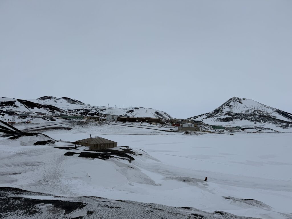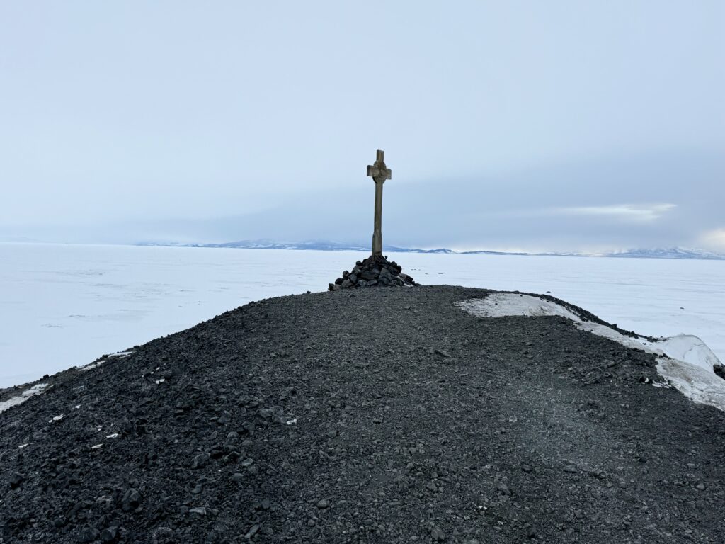 There are several trails that are apart of the “Ross Island Trail System”, including some out on the Sea Ice! Decided to go with an easy one, which I started at 8:45PM. It’s about a 1.5 mile hike out to Discovery Hut, which was erected in 1902 when members of the British Discovery Expedition, led by Captain Robert F. Scott, of the 1901-1903 were the first to set foot on land at the present site of McMurdo, where 25 men spent TWO winters here. I’m hoping that they will have some organized tours of the hut while I’m here. At this point, there is also a cross erected to commemorate the life of Seaman George T. Vince who lost his life sliding down the cliff into the sea.