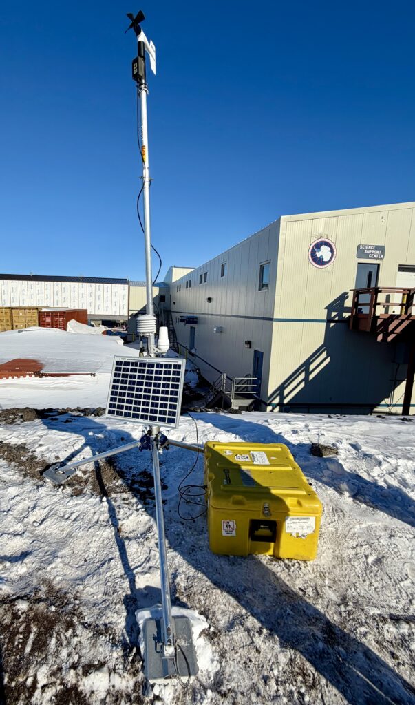 The primary mode of weather observing will be the Portable Polar Meteorological Kit (PPMK). It can run through either solar or battery power and we can transmit via iridium. It does have it’s own “wifi” network, so we can encode the observations on either our phones or via the included tablet. Sensors include: wind (speed/direction), temp/humidity, and pressure. We manually observe visibility, weather/precipitation, and clouds/sky cover. While out in the field we will be minimally doing the synoptic observations and on flight days will be be doing hourly + continuous metwatch with SPECI observations every 20 min if conditions are changing, so it will be feast or famine for sure!