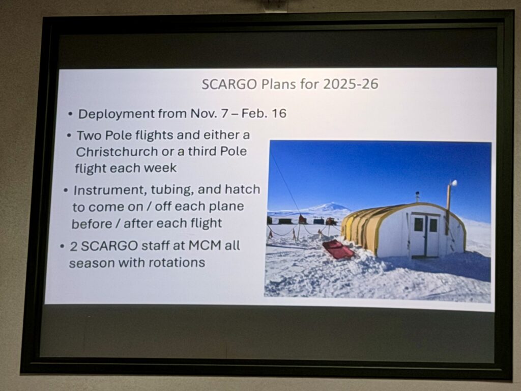 The rest of last Sunday was full of optimism where it was looking decent to get our first flight out to the field camp. In the meantime, I went to another Sunday Science Lecture. This one was from NCAR (National Center for Atmospheric Research) on studying carbon dioxide, methane, and other gasses in the atmosphere over the Southern Ocean. In order to do their study, they have created equipment specifically for our LC-130’s that fly consistent routes between Christchurch, McMurdo, Field Camps, and the South Pole.