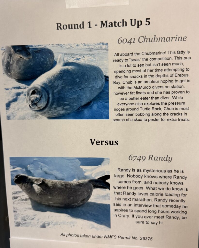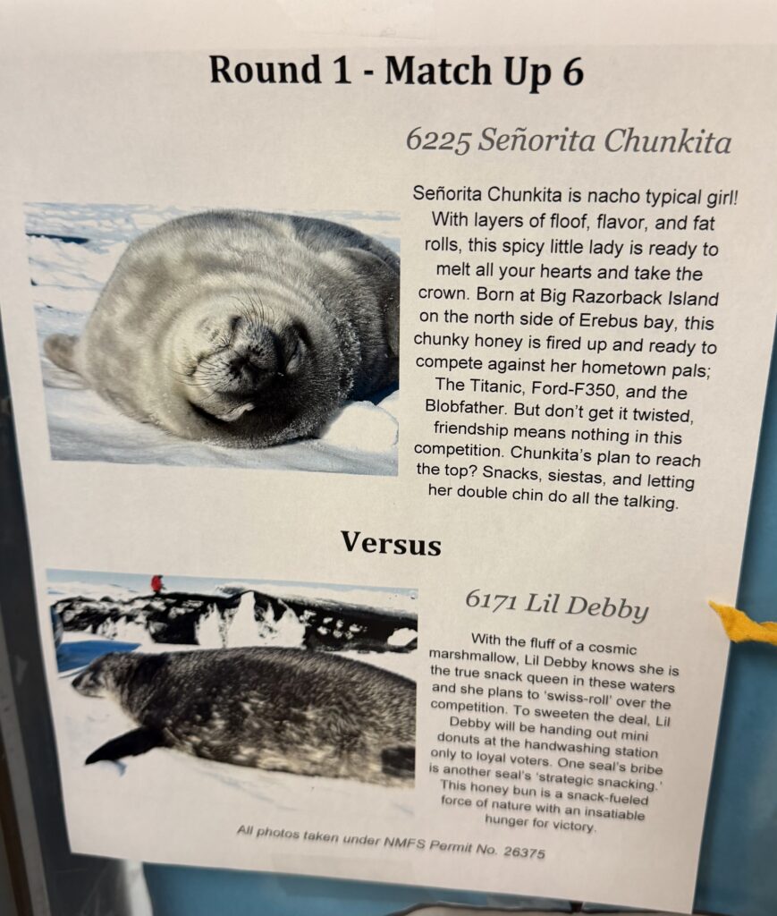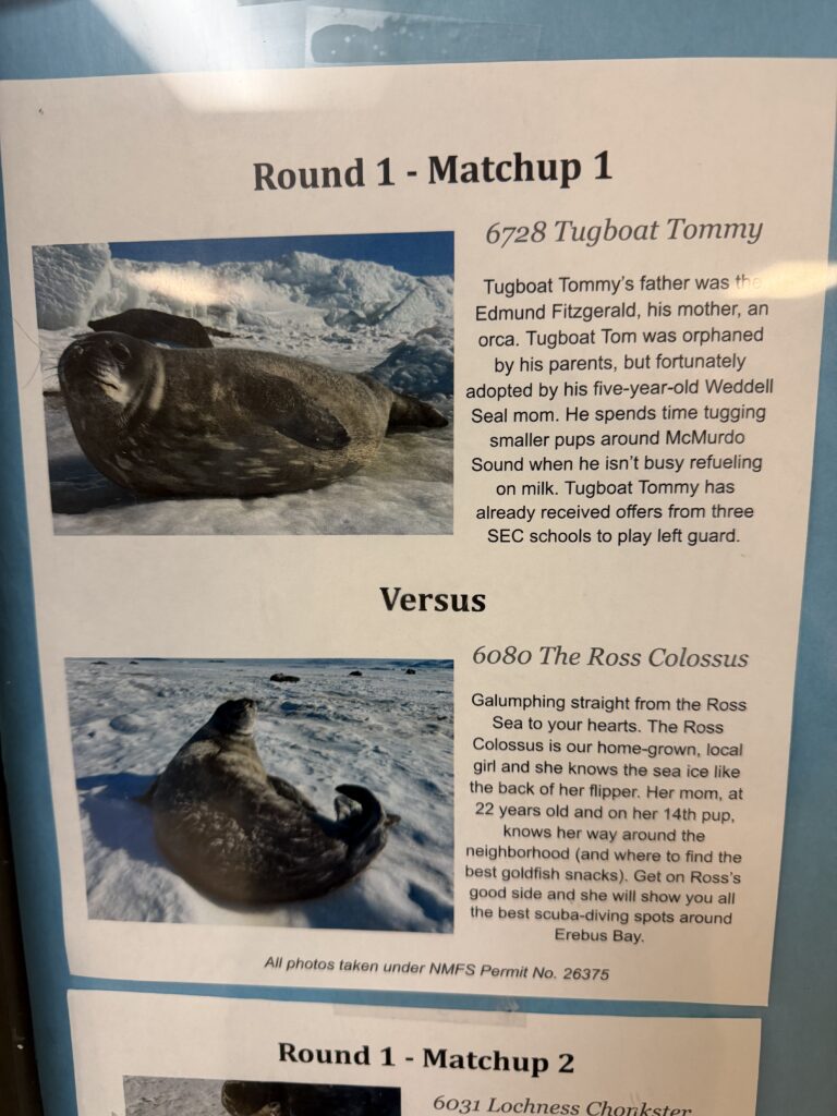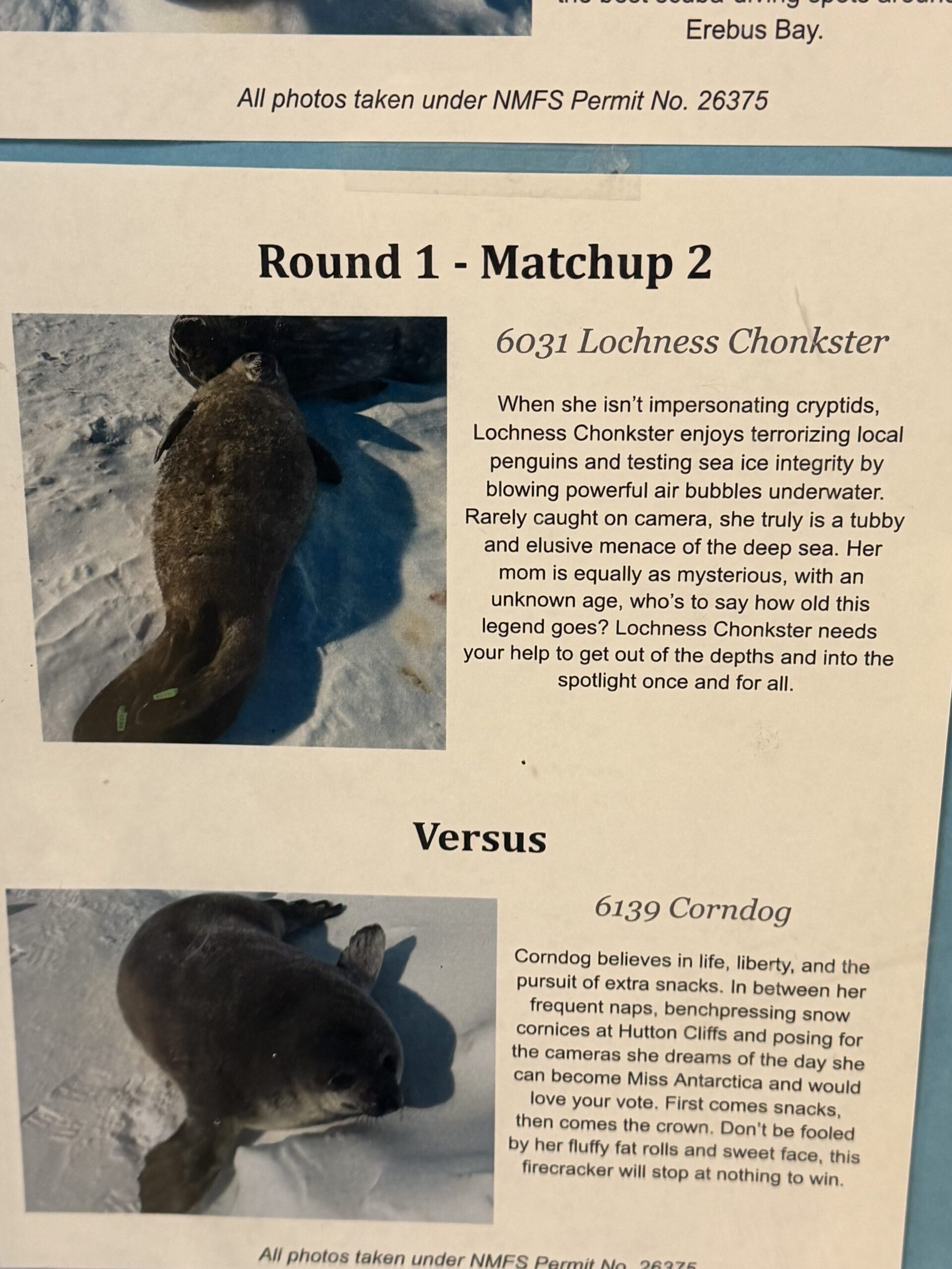 Other fun things of the week included “Fat Seal Pup” Week. There’s a science group out here studying the Wendell Seals and their new pups, as it’s currently pupping season. While they already named and tagged them, they’re having us vote on our favorites. Check out the cute bios they posted.