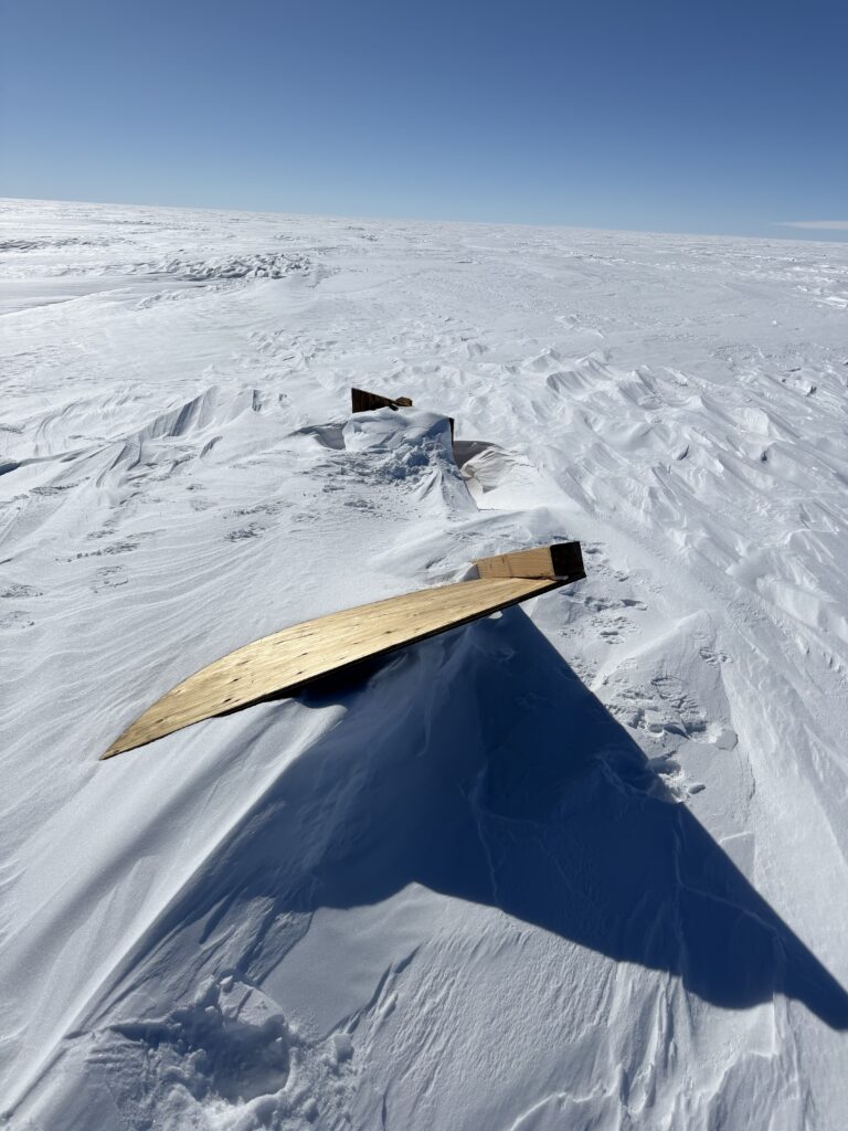 Tuesday ended up being a beautiful day, but we had no flights. So it was a good opportunity to take out the snowmobiles to check out our visibility markers. We have daytime markers at 1, 3, and 3 miles out in three different grid directions. It was a lot of fun driving miles away from camp on snowmobiles and had me thinking that it’s possible of some of the areas we were walking around that we were the only humans EVER to step foot here. Pretty neat! Anyways, we were able to find all but one and some were in better conditions than others, so we will be working to get them re-established next time we have a nice day with no flights.