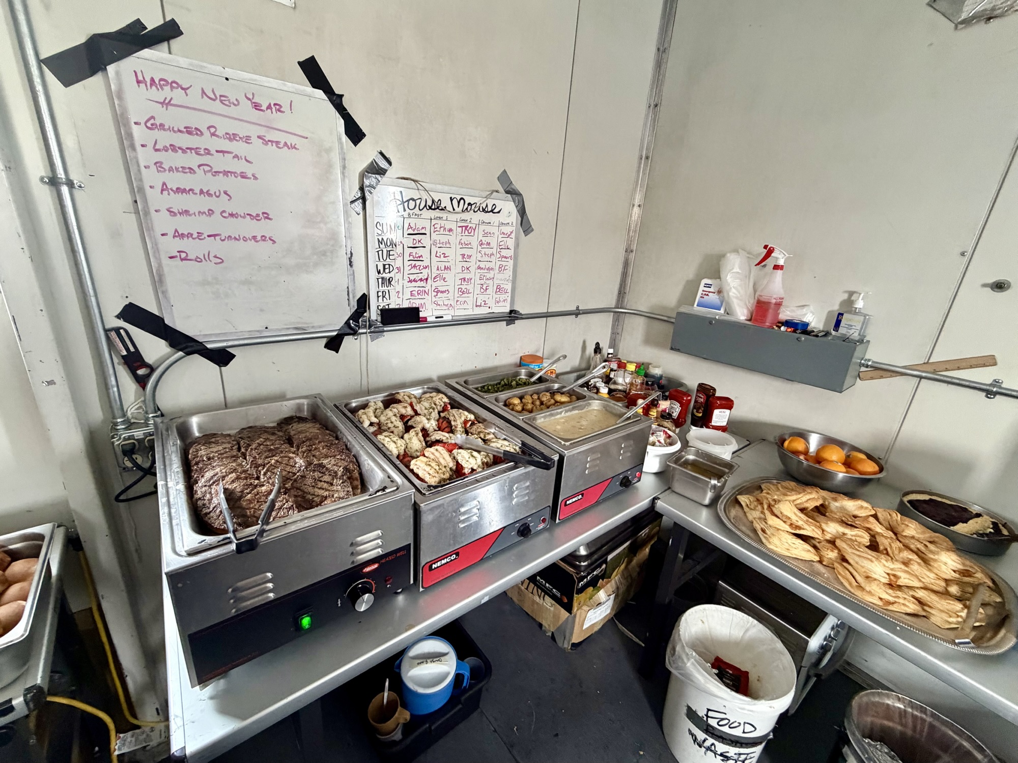 Our cook truly outdid himself for our New Year’s feast! For lunch, we had a smattering of the traditional “good luck” foods and for dinner we had steak and lobster!