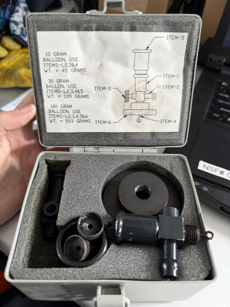The basic premise is filling a weather balloon to 30g of helium and when it’s released, it is tracked via eyesight until it disappears into the clouds (hence why this one is a red balloon versus your typical white weather balloons). The rate of ascension is standard and based on the time calculated, determines your cloud base.