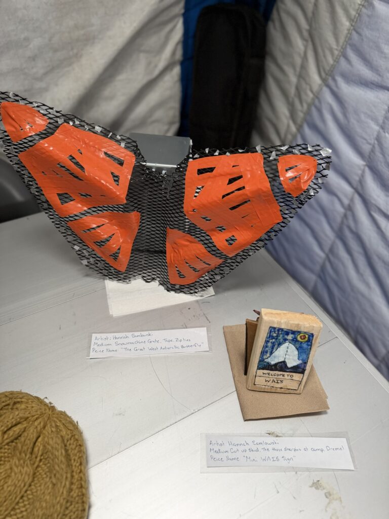 To finish out our incredibly long week, we had an art gallery! Affectionally known as WAAAG (West Antarctic Alternative Art Galley), which is a play on McMurdo’s MAAG (McMurdo Alternative Art Gallery) also happening this weekend. We had a lot of fun creating “art” drawing inspiration and materials from our flat white home away from home. I, myself, created and displayed my first art piece ever!