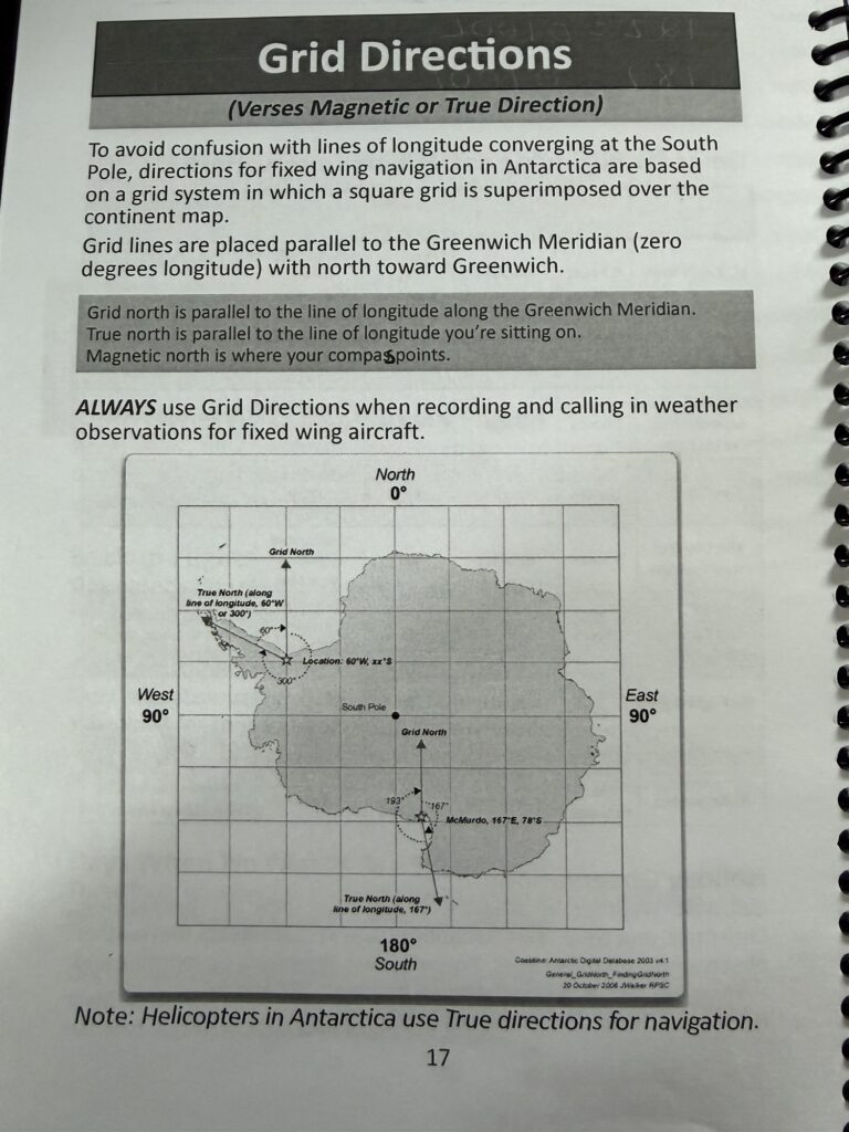 So, what are GRID directions? It is how we determine direction down here, since lines of longitude converge at the South Pole, so we use a grid system across the continent where GRID North is parallel to the line of longitude along the Greenwich Meridian.